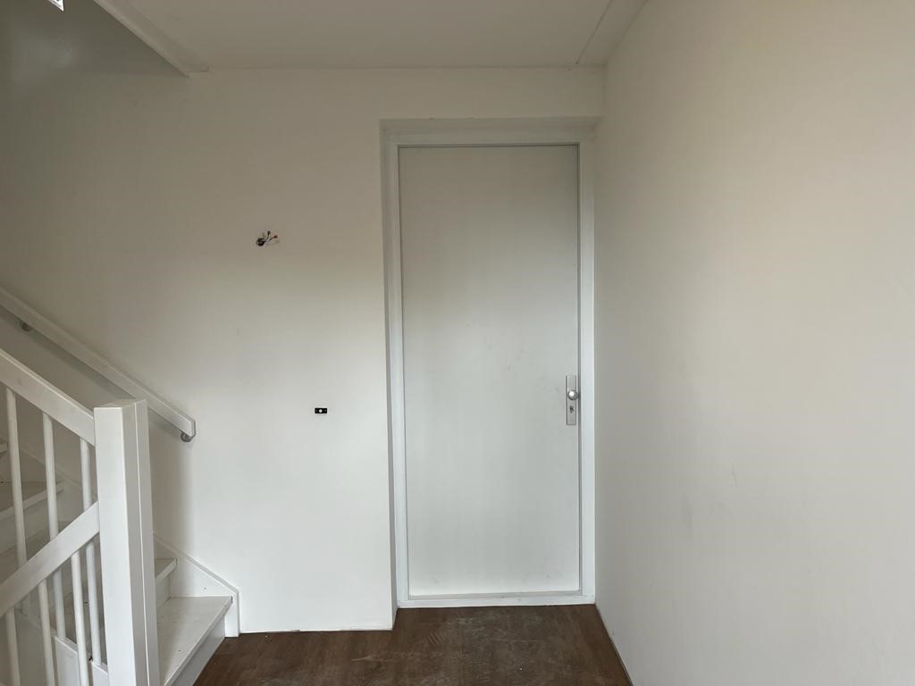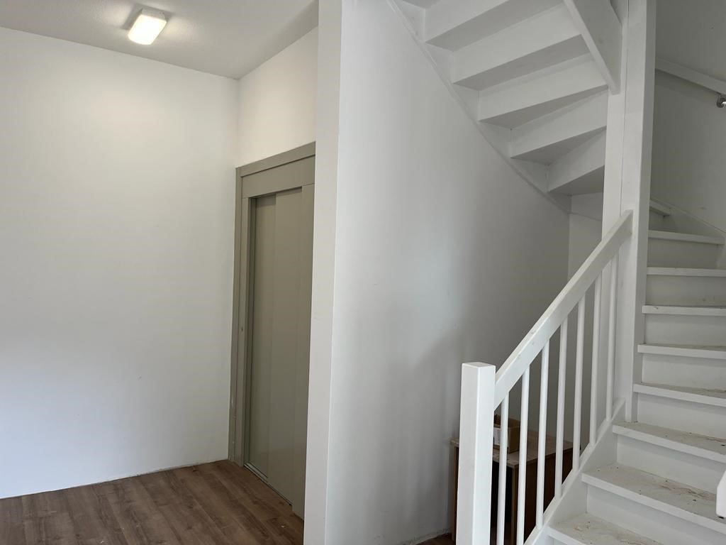 Indeling: entree op de begane grond met gesloten portiek naar lift en trapopgang naar voordeur met hal, toilet en zowel doorloop naar woonkamer met open keuken en straatgericht balkon alsmede overloop naar 2 slaapkamers, badkamer en wasruimte. Aansluitend aan de achterste slaapkamer dakterras met overkapping