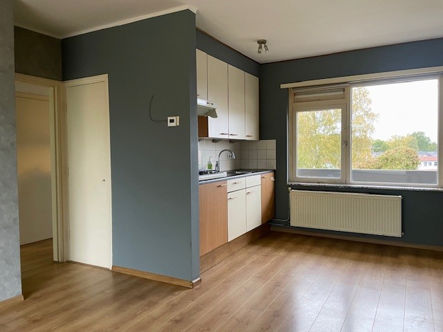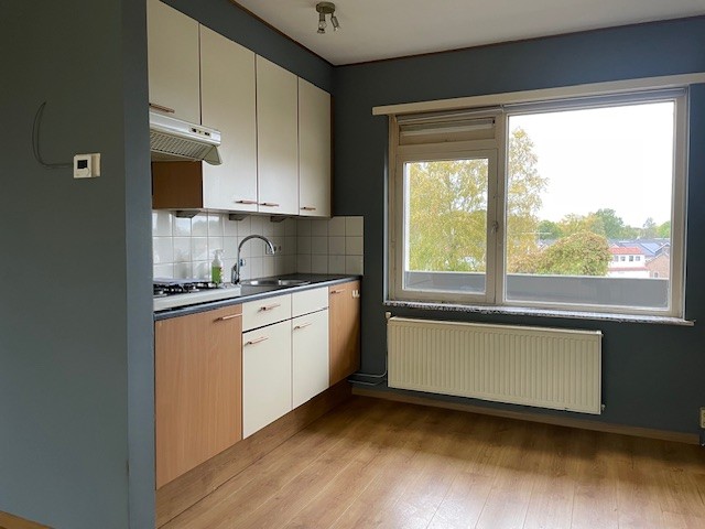Indeling: Entree/hal met meterkast, twee vaste kasten en aansluiting voor de wasmachine. De badkamer is voorzien van een douche en toilet. De slaapkamer beschikt over een wastafel en biedt toegang tot een klein balkon. De lichte woonkamer is voorzien van een vaste kast. De keuken is uitgerust met een gaskookplaat, oven, afzuigkap en koelkast.