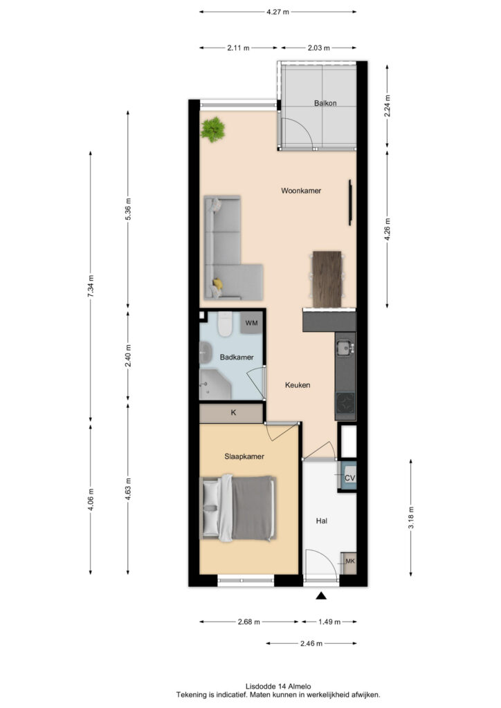 De woning is verzorgd afgewerkt en heeft een prettig en ruim balkon met vrij uitzicht.