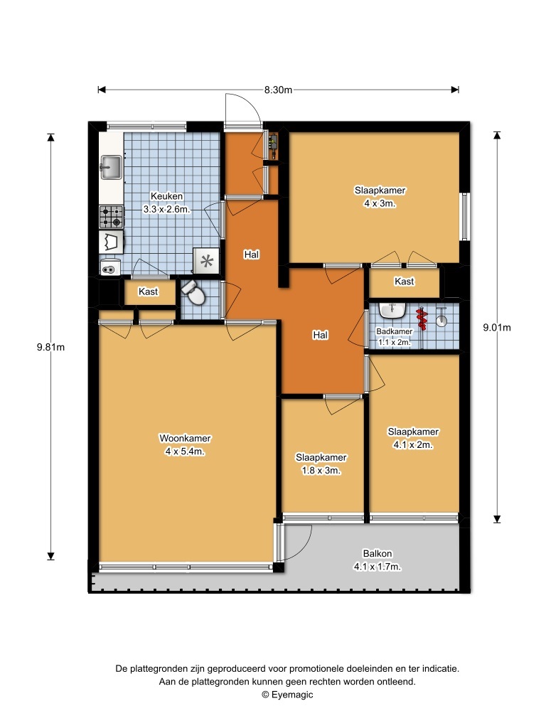 Indeling: entree, hal, meterkast, toilet, gesloten nette douch eenvoudige keuken voorzien van C.V. opstelplaats, provisiekast en wasmachine aansluiting, doorzon woonkamer met doorgang naar balkon op zuid/westen, tussenhal met doucheruimte met wastafel, 3 slaapkamers